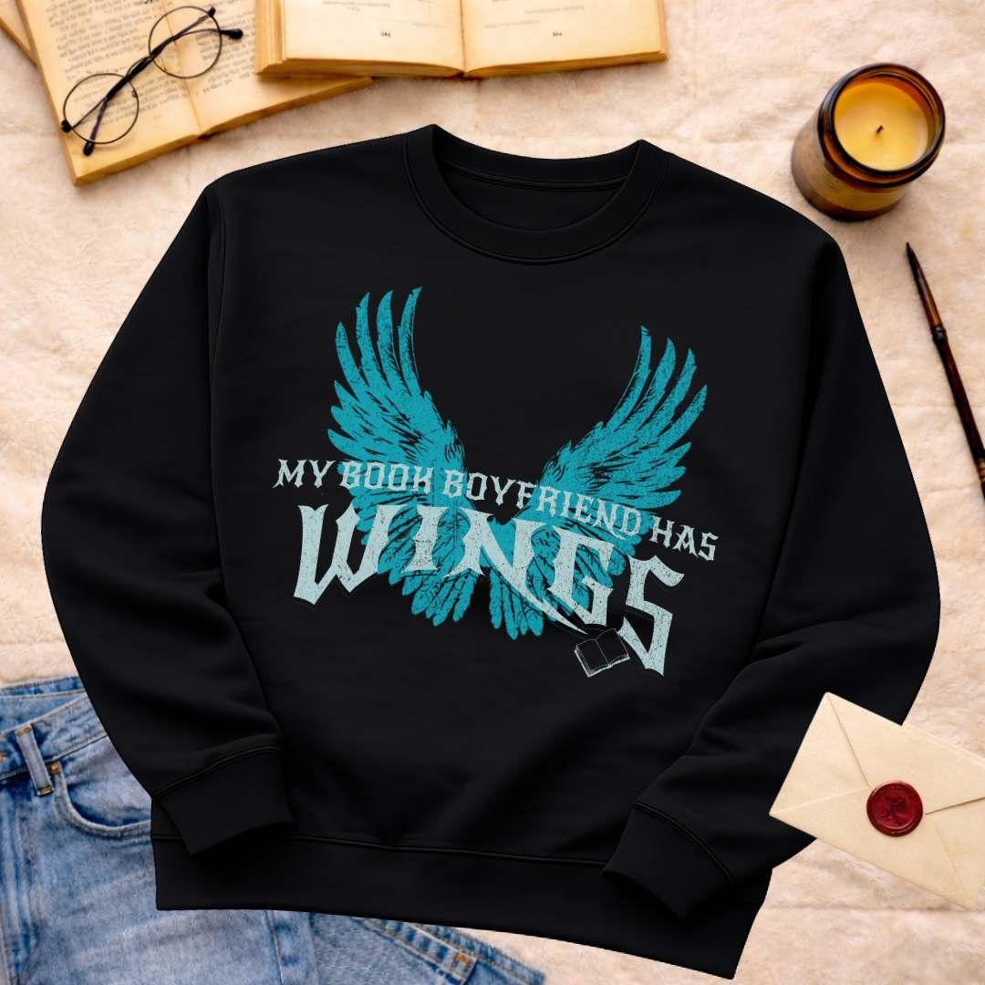 My book boyfriend has wings blue version | Sweatshirt